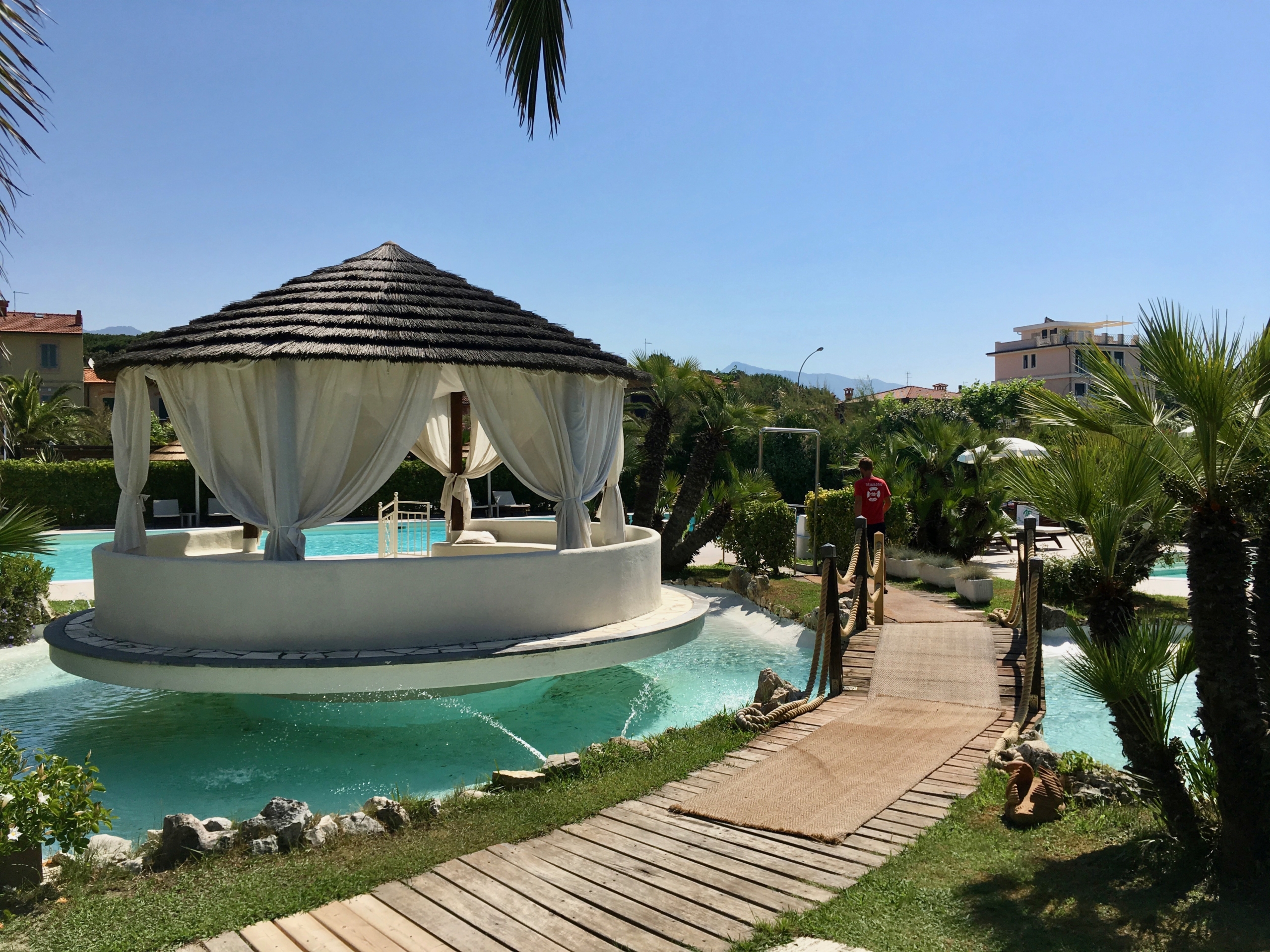 Un ambiente esclusivo e raffinato: la parte beach comprende tende arabe e gazebi, comodità come il servizio teli, wi-fi internet e servizio bar ristorante in spiaggia. A disposizione della clientela la splendida piscina di oltre 20 metri, la jacuzzi, la palestra e il laghetto che circonda il grande gazebo relax.